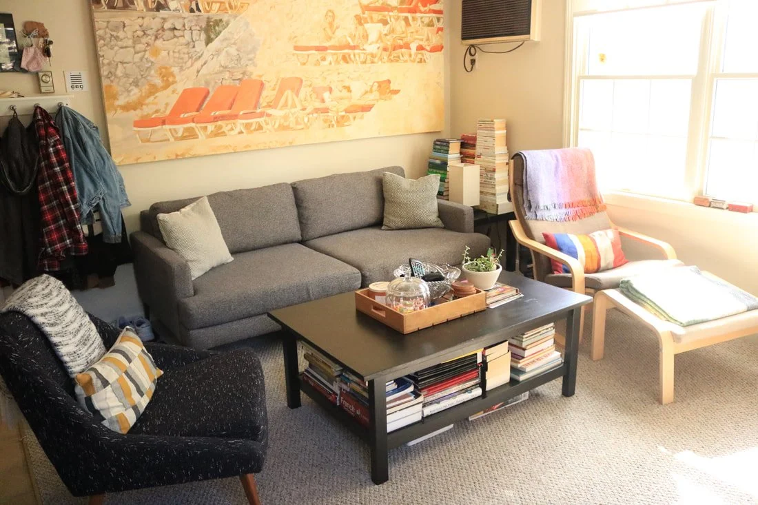 Here is an unnecessary number of pictures to celebrate having everything settled in (finally)! Arranging the books into every nook and cranny has been a challenge, but pretty fun to figure out. Note the Harry Potter book collection in English, French, German, Dutch, Polish, and Italian... Also we get some great sunshine in the living room in the late afternoon so I've stationed as many plants and sun catchers as possible by the windows. I'm also really happy with the hanging glass float. I put some wire lights in the netting so at nighttime it's a gentle light source. During the day, it catches the sun. Before, this was hanging on our deck, and before that, in my grandparents' lanai.