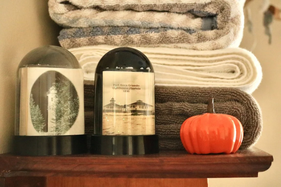 I decided to do the same with a cross section of my snow globe collection from childhood. I still have a half dozen more tucked away in a box but these are my favorites. Bermuda, Baltimore Aquarium, Boca Grande, Endicott, 1000 Islands. The most fun snow globe to shake is the Aquarium one, because it looks like the dolphins are nosing through the sand. Another childhood collection that came out of storage is a stack of around 100 cardboard coasters. I've been collecting them for over 15 years.