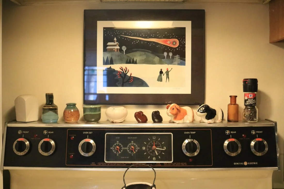 Chris's desk for music is set up in the living room, while mine is set up in the bedroom. We figured I would need a quiet space where I could shut myself away to work without taking the living space out of commission. I put a lot of decorations out that I inherited from my grandparents too. I hadn't felt comfortable setting them out when we had roommates because many of them are breakable, so it has been nice unpacking and finding a spot for each of those.