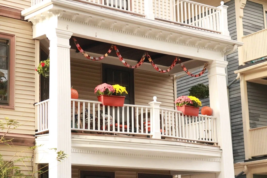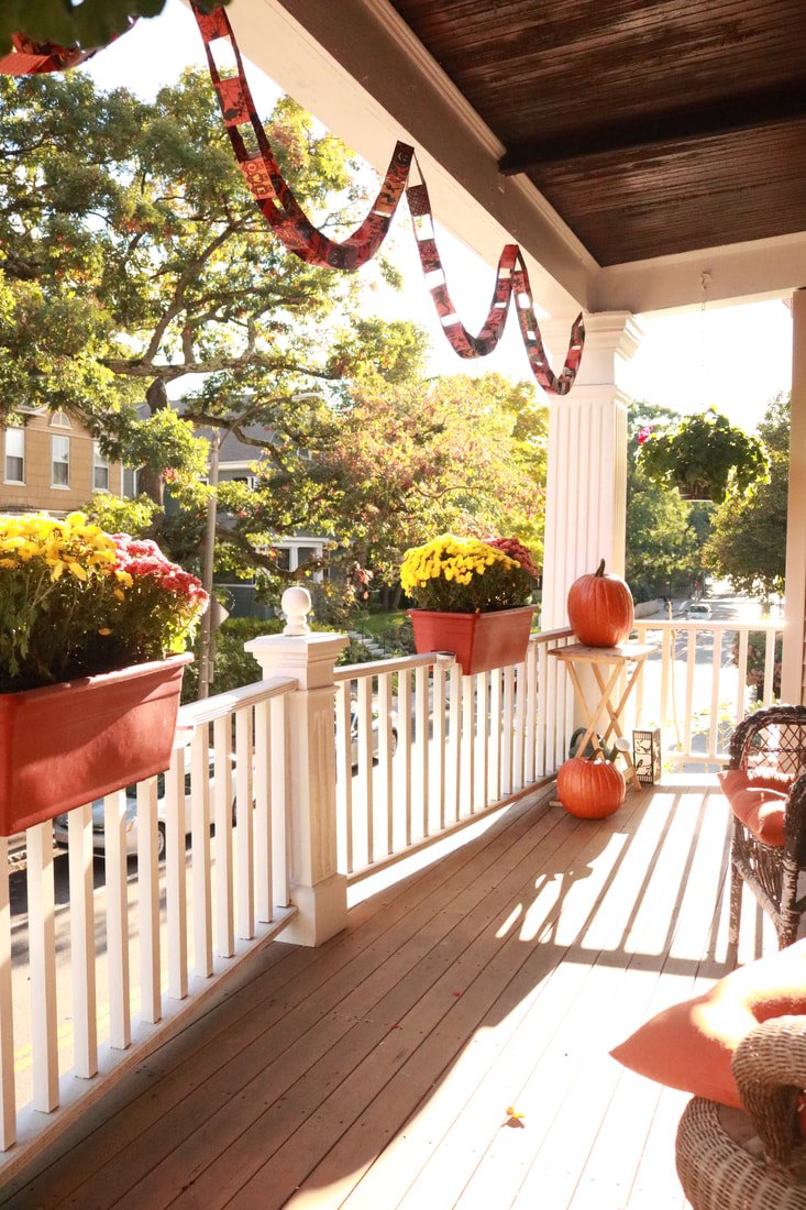 It's finally fall, which means Halloween themed paper chains have been hung (by toy company eeBoo), mums have replaced our pansies, and pumpkins have joined the ranks. Hasn't scared this bumblebee away though.