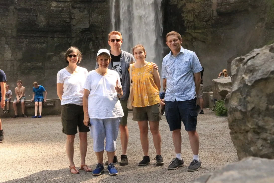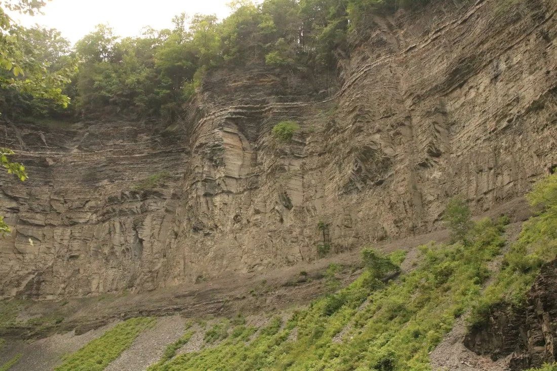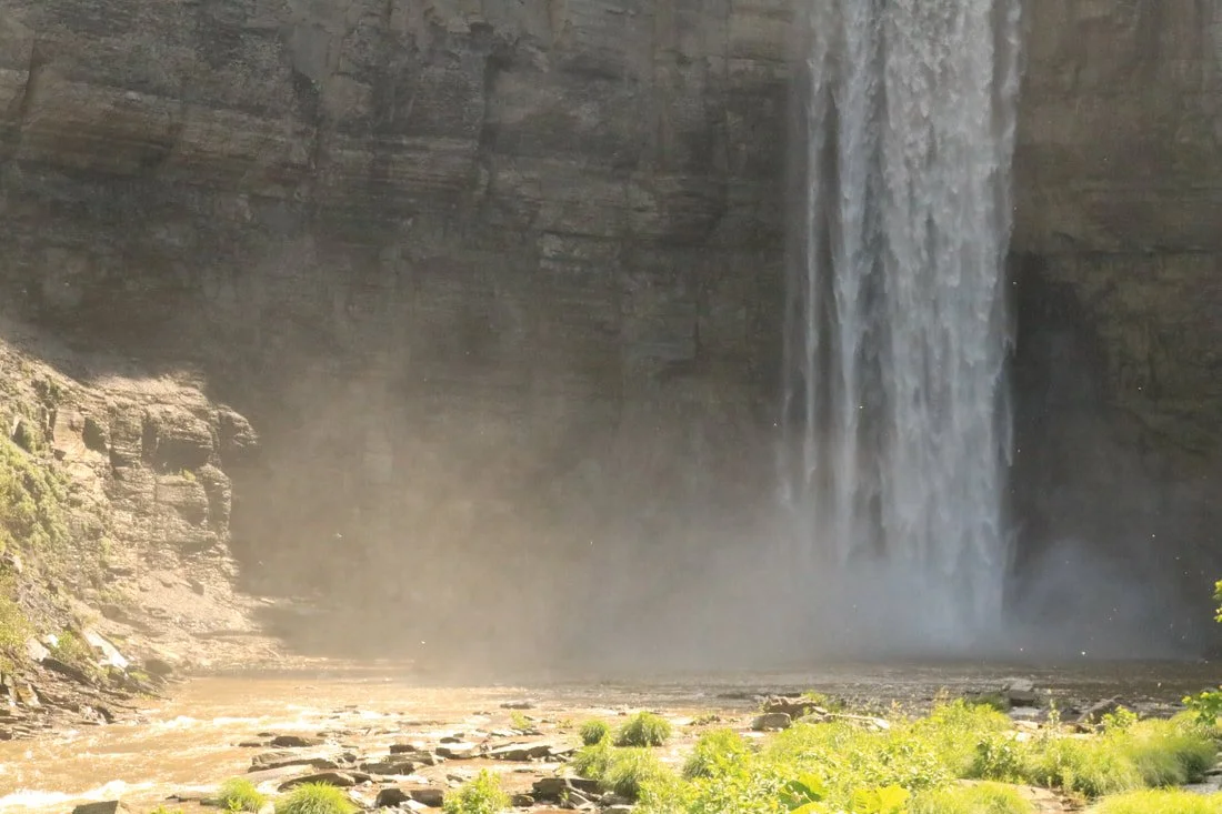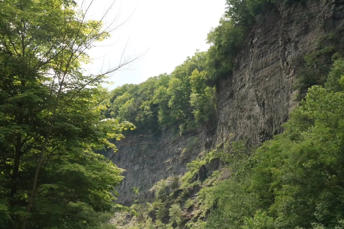 On Sunday, we were back upstate and went to Ithaca to walk along Taughannock Falls, which I hadn't visited in probably 15 years. It was definitely the first time I'd been with a digital SLR camera so there was the usual procedure where everyone walked along at their usual pace while I hung back eagerly getting the lighting right on various rocks and water features.
