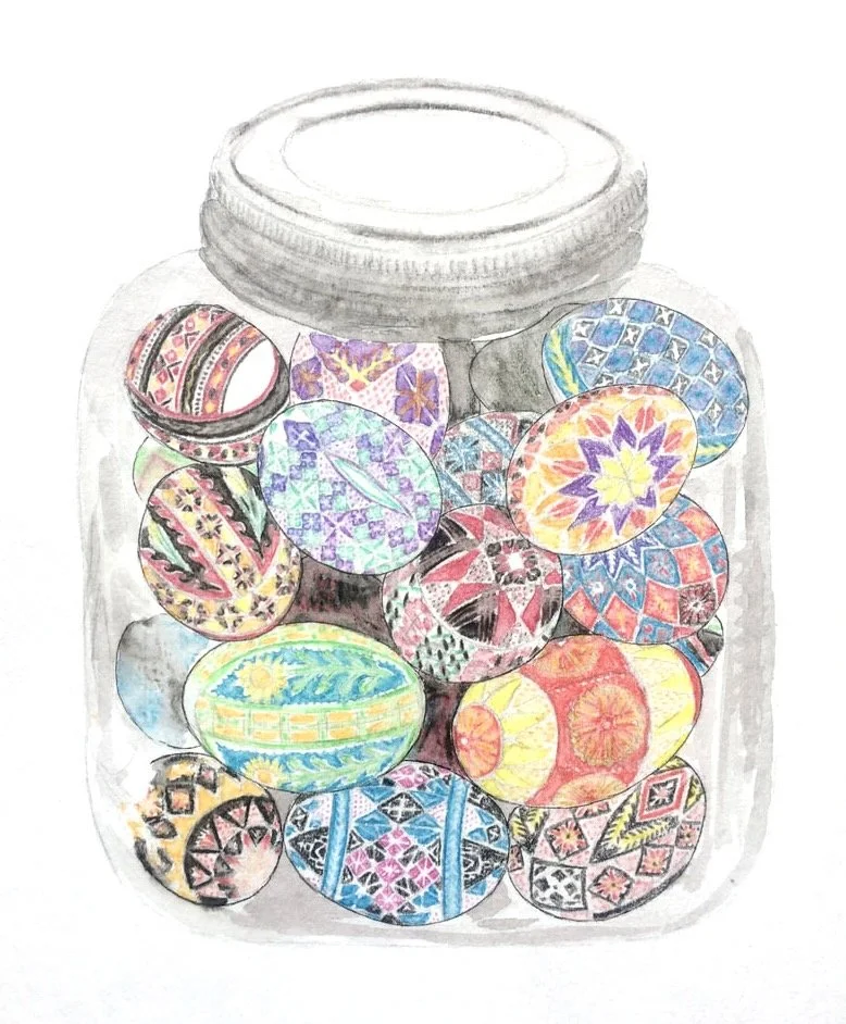 Grandma Rose passed on the Ukrainian art of pysanky to Sharon and Mary, who then introduced the tradition to their children. Efforts have also been made to re-establish Ukrainian customs in my generation. For instance, Mary’s daughter Emily incorporated a traditional рушник (rusknyk) ceremony during her wedding, which involved a traditional embroidered cloth being presented and stepped over by the couple. They also included the traditional Ukrainian wedding braided bread коровай (korovai) during their reception and played Ukrainian songs after the ceremony. Most of the descendants of Andy and Rose own vyshyvanka, or traditional embroidered blouses, either ordered from Ukraine or sold at Ukrainian festivals in the US. Mary and Sharon’s cousin Pastor Rite Reverend Mitred Archpriest Philip (descended from the Breslawskis) is a priest at St. Josaphat's Ukrainian Catholic Church and my mother regularly attends their festivals, where they sell Ukrainian dress, jewelry, food, and crafts such as intricately carved wooden boxes.