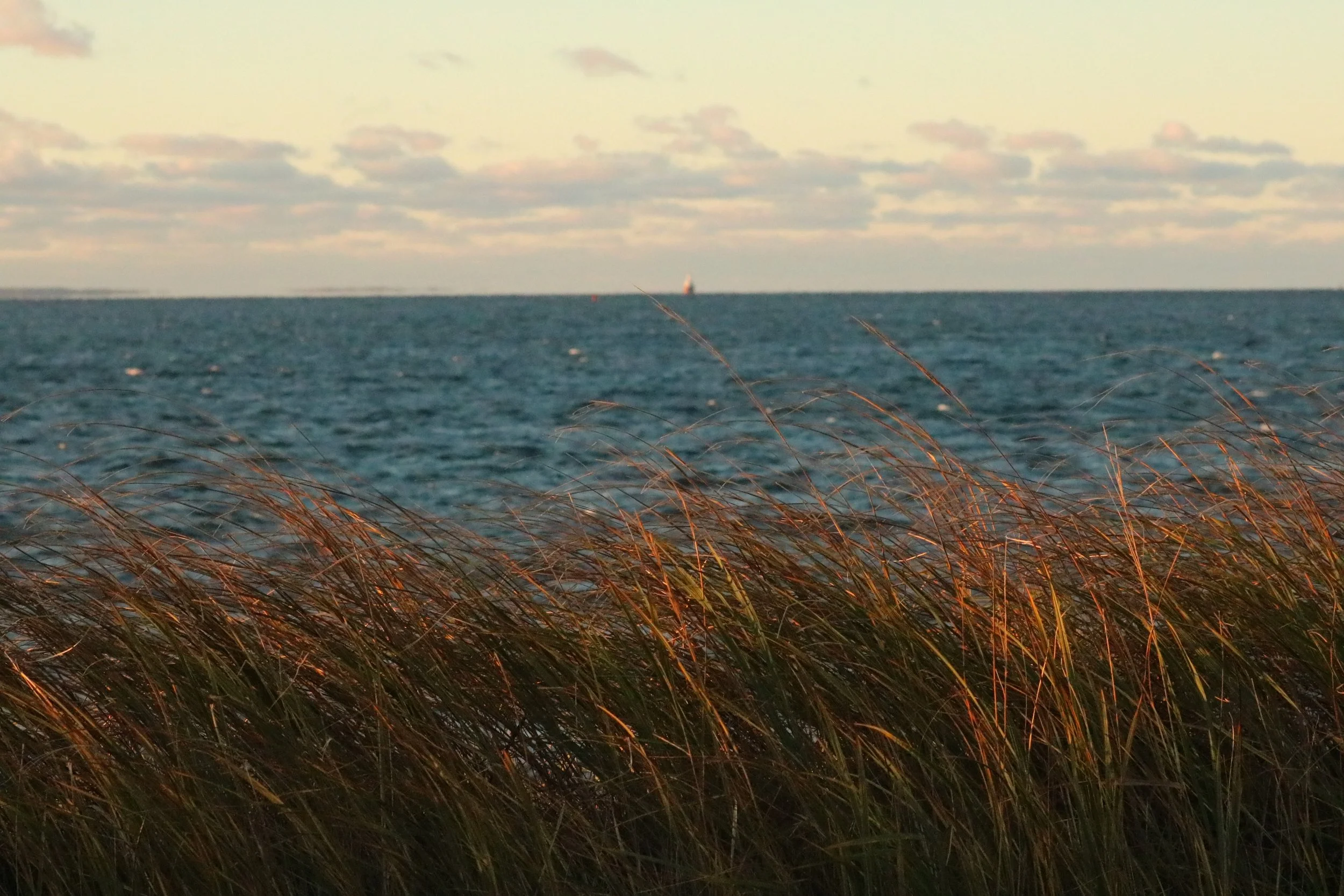 Most mornings, we had breakfast at the local diner (Corner Cafe). For dinner, we had a celebratory meal at an Italian restaurant (Siena) in Mashpee, and made quick trips out for pizza and ice cream. Otherwise, we spent most of the time snacking, drinking hot drinks, exploring along the water, and sitting on a bench facing the horizon where we could watch the cormorants dive and ships pass. We even saw a seal pop out of the water at sunset one evening. When it was cold or rainy, we sat in the living room facing the water and read our books or played our favorite board game (Wingspan). I also finished a scrapbook of some memorabilia from our wedding. We caught every sunrise, including an incredible one that framed a flock of hundreds of cormorants flying from one side of the bay to the other.